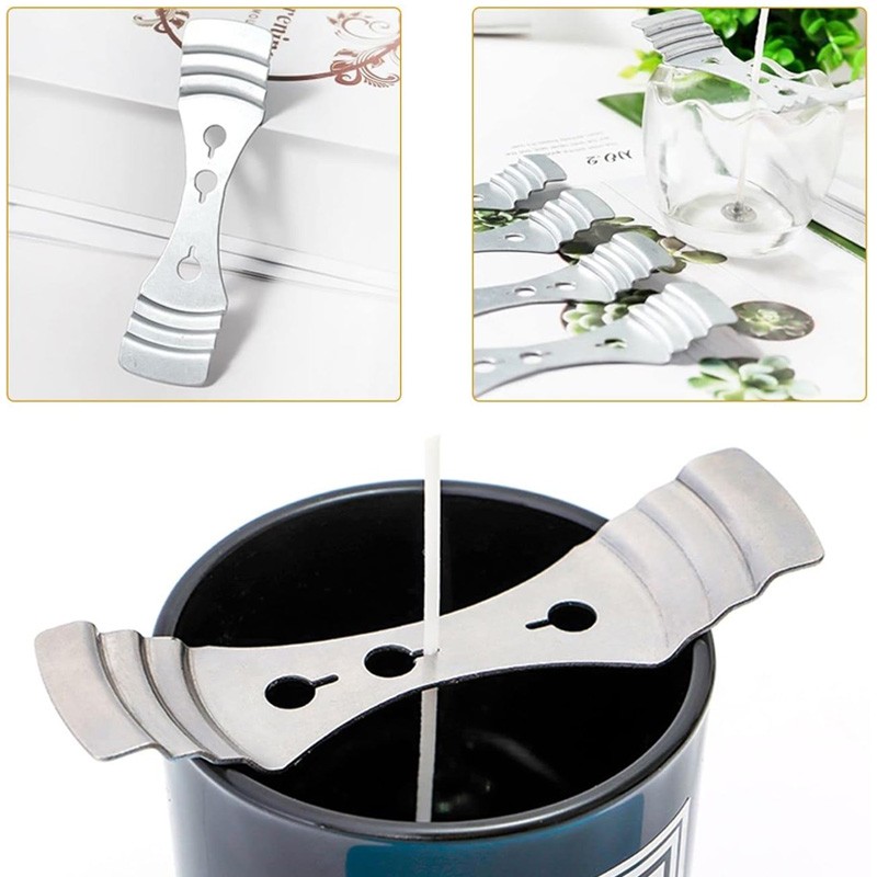 Centreur de mèche pour bougies en métal. Il permet de maintenir facilement votre mèche pour qu’elle soit au centre de votre récipient. Il vous fera gagner beaucoup de temps pour fabriquer vos bougies dans des contenants.